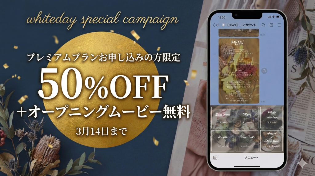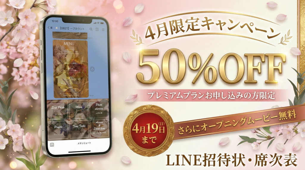 プレミアムプラン50%OFF+ウェディングムービー無料でご提供いたします。