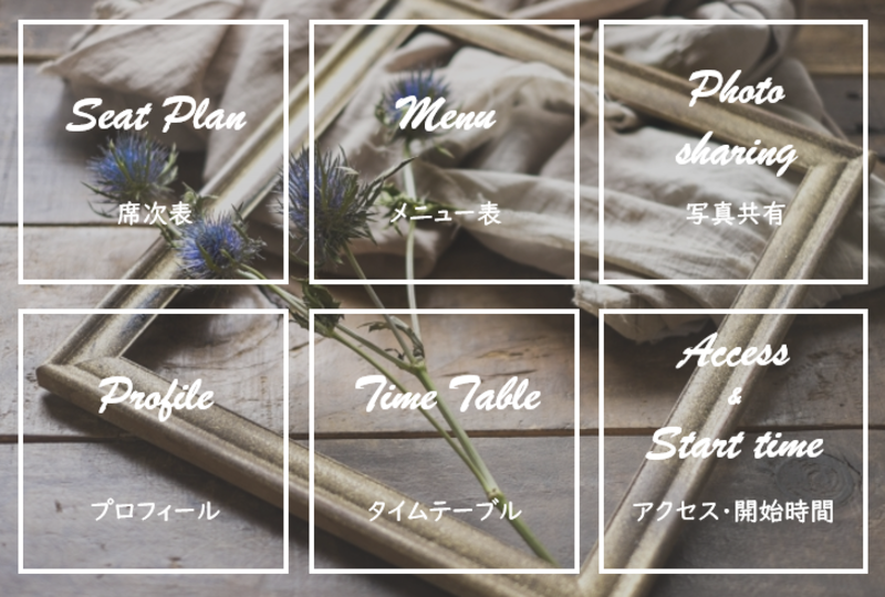 ・注目ポイント:紫陽花デザインをベースにしつつ、メニューボタンのみ前撮り写真を背景にチョイス!